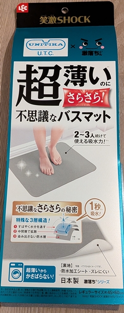 表面を削っても黒ずみやカビの不安は拭えませんし、何より重くて移動が大変です。そんな時に見つけたのが、レックの「激落ちくん」シリーズとユニチカトレーディングの技術がコラボした「笑激SHOCK 超薄さらさらバスマット」です。
