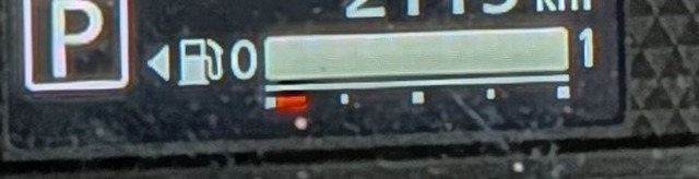 窓から身を乗り出して確認したり、一度車から降りて確かめたりする必要はありません。運転席に座ったまま、スピードメーター付近にある燃料計を確認してください。給油機のアイコンのすぐ横に、小さな三角マーク(◀︎ または ▶︎)が表示されています。