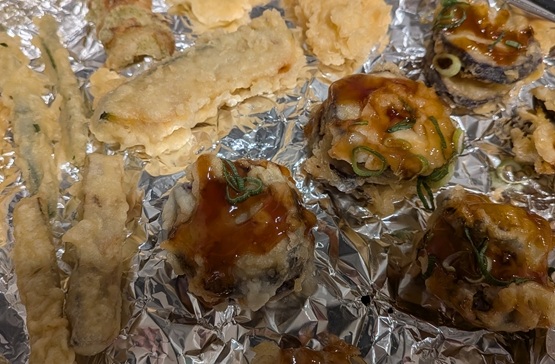 天ぷらと肉はさみ揚げの仕上がり