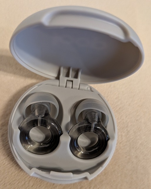 こちらがケースにセットした状態です。非常にコンパクトに収まっており、内部で耳栓が動かないように設計されています。
