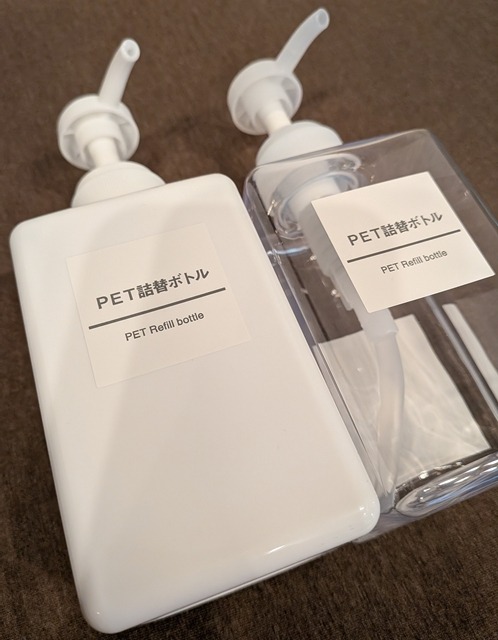 まずは空のボトルを手に入れようと考えました。そこで向かったのが無印良品です。無印良品の詰め替えボトルは、デザインがシンプルで飽きがこないですし、何よりサイズ展開が豊富です。